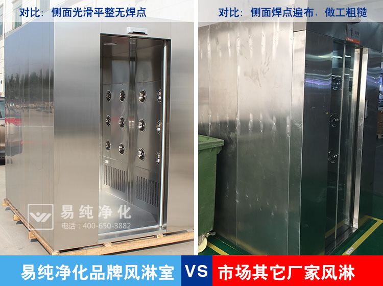 1、風(fēng)淋室的材質(zhì):首先從材質(zhì)上分類主有彩鋼板,鋼板型風(fēng)淋室和不銹鋼風(fēng)淋室三種主流材質(zhì)。其中彩鋼板因質(zhì)量較差目前已經(jīng)基本不再使用,鋼板風(fēng)淋室主要看材質(zhì)的厚度和噴漆的過程,市場上有的采用0.8-1.0的材質(zhì)厚度,這種厚度偏薄,容易變形。一般建議在1.2MM或以上的鋼板材質(zhì)較佳。在噴塑上面,很多廠家都是自噴或者是到小廠家噴塑。這其中有一個最重要的環(huán)節(jié)就是需要酸洗磷化,很多廠家為了節(jié)約成本或者噴塑廠家實力不行,未經(jīng)過酸洗磷化,如果缺少這個步驟,油漆本身很難與設(shè)備粘合,時間一長,很容易整場的脫漆。